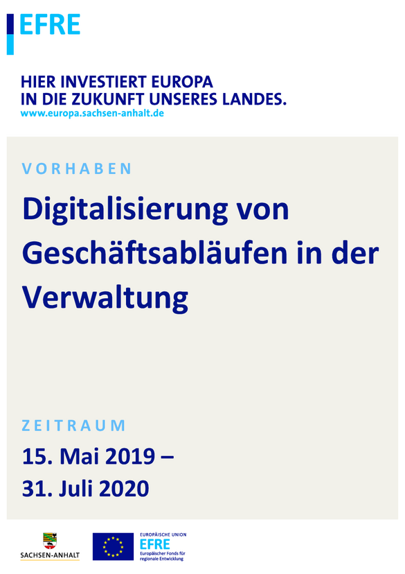 Hierfür steht uns eine Zuwendung zur Förderung von Digitalisierungsprozessen in Unternehmen Sachsen-Anhalts "DIGITAL INNOVATION" zur Verfügung.